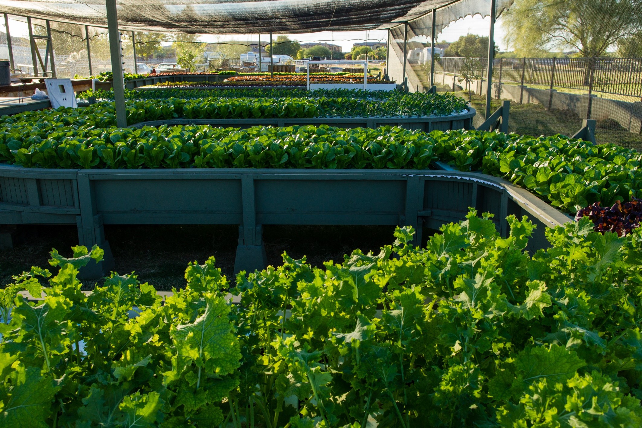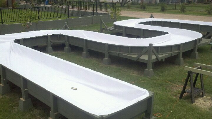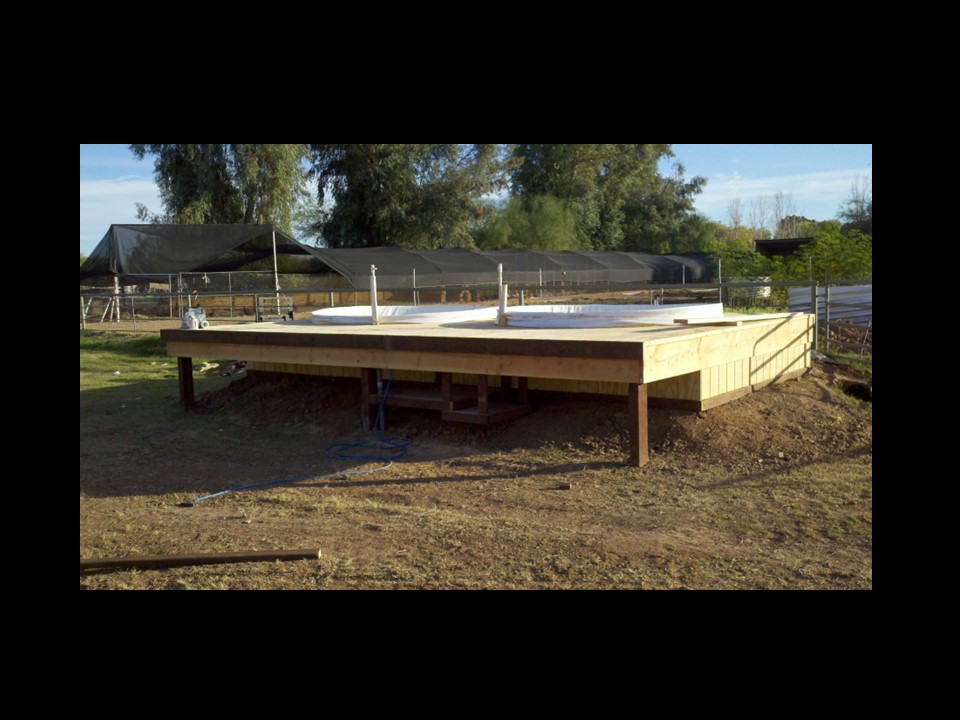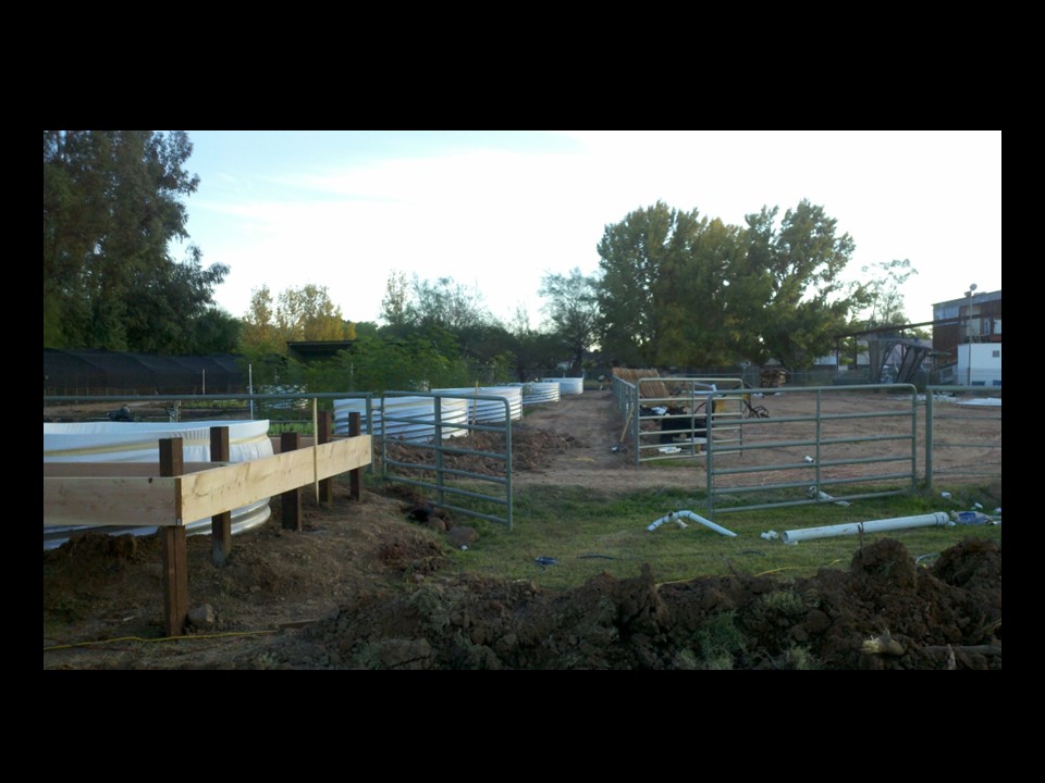 At the Ranch House I also started construction on another aquaponic system in a separate garden. This was going to be my warm tank system, (Tilapia). I still used water from the pond system, but I isolated it and heated. Other necessary changes that had to happen was the amount of labor involved in planting and harvesting. My thinking was to raise the aquaponic troughs to the height of 30” so my workers didn’t have to bend over to plant or harvest. Another huge difference in this system from the one in Chandler, was that the troughs have 45 Degree turns, instead of the straight runs from the Hawaiian system. Where in nature do you find straight lines? Of course, with these drastic changes from the Hawaiian system, I had some true engineering issues.